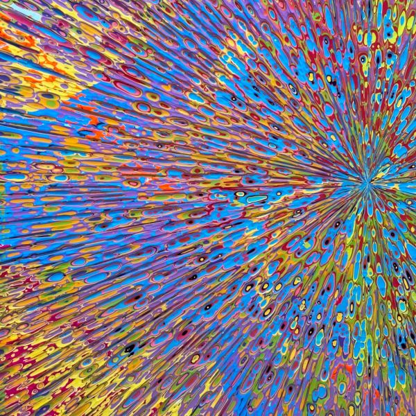 What you see in Excavations is both painting and sculpture. Each excavated art piece is made by layering twelve individual paintings, with motivation, intention, patience, joy, freedom and love, then carving into the layers to reveal a new work of art. Each layer is a unique ecstatic act, sealed in time by its successor. Carving through the painted sediment and archaeology reveals fragments of history and ancestry. Drawing inspiration from the earth and its layers of life beneath us, and from the sky overhead holding stars, super novas, the ‘big bang’, we feel the motions in time and space that have created us. From this intense energy of moving tectonic plates and exploding stars a new story is birthed. We are the layers of our past, and a continuously new waking form.