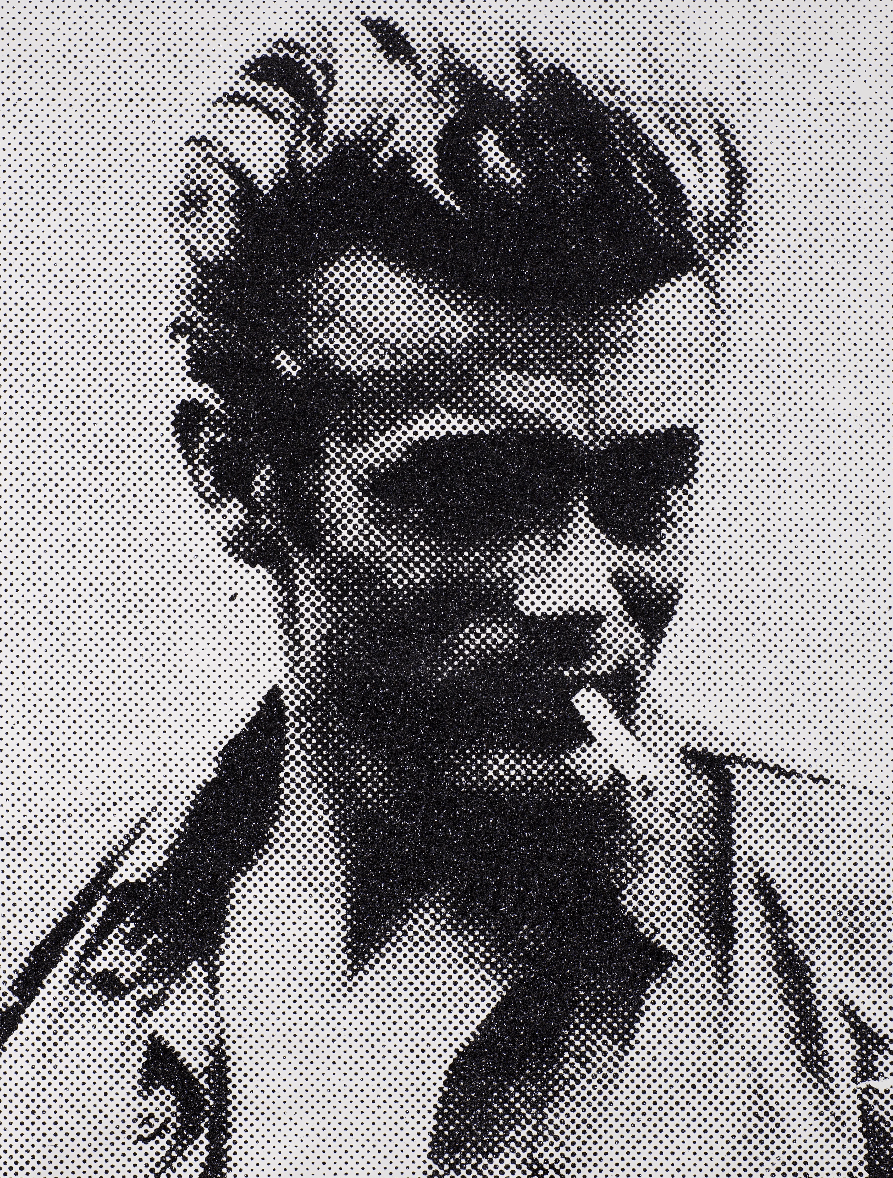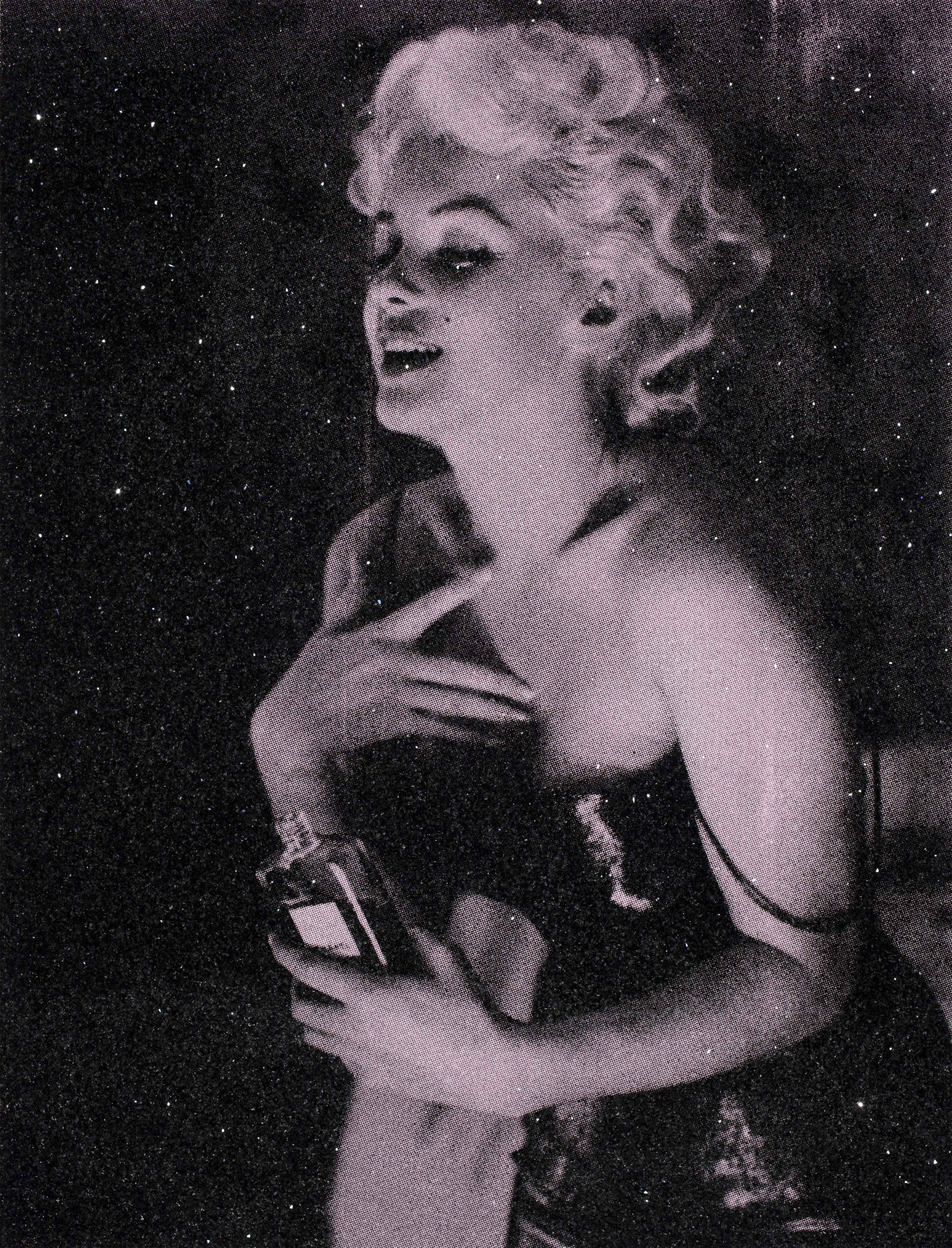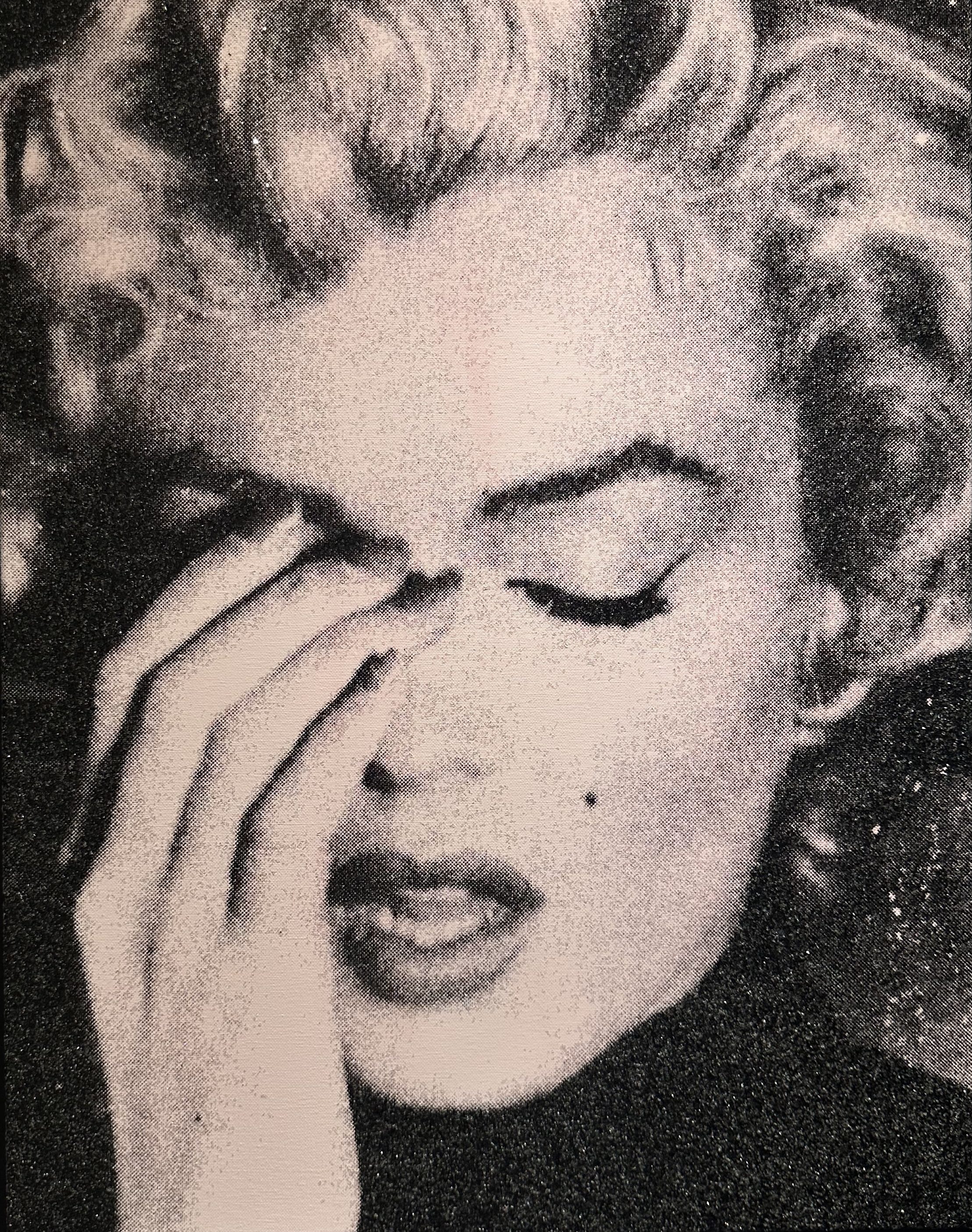 In the early 2000s, Russell Young shifted his focus to fine art and developed a distinctive visual language: hand-pulled screenprints of legendary figures such as Marilyn Monroe, Elvis Presley, and Brigitte Bardot, often enhanced with diamond dust.