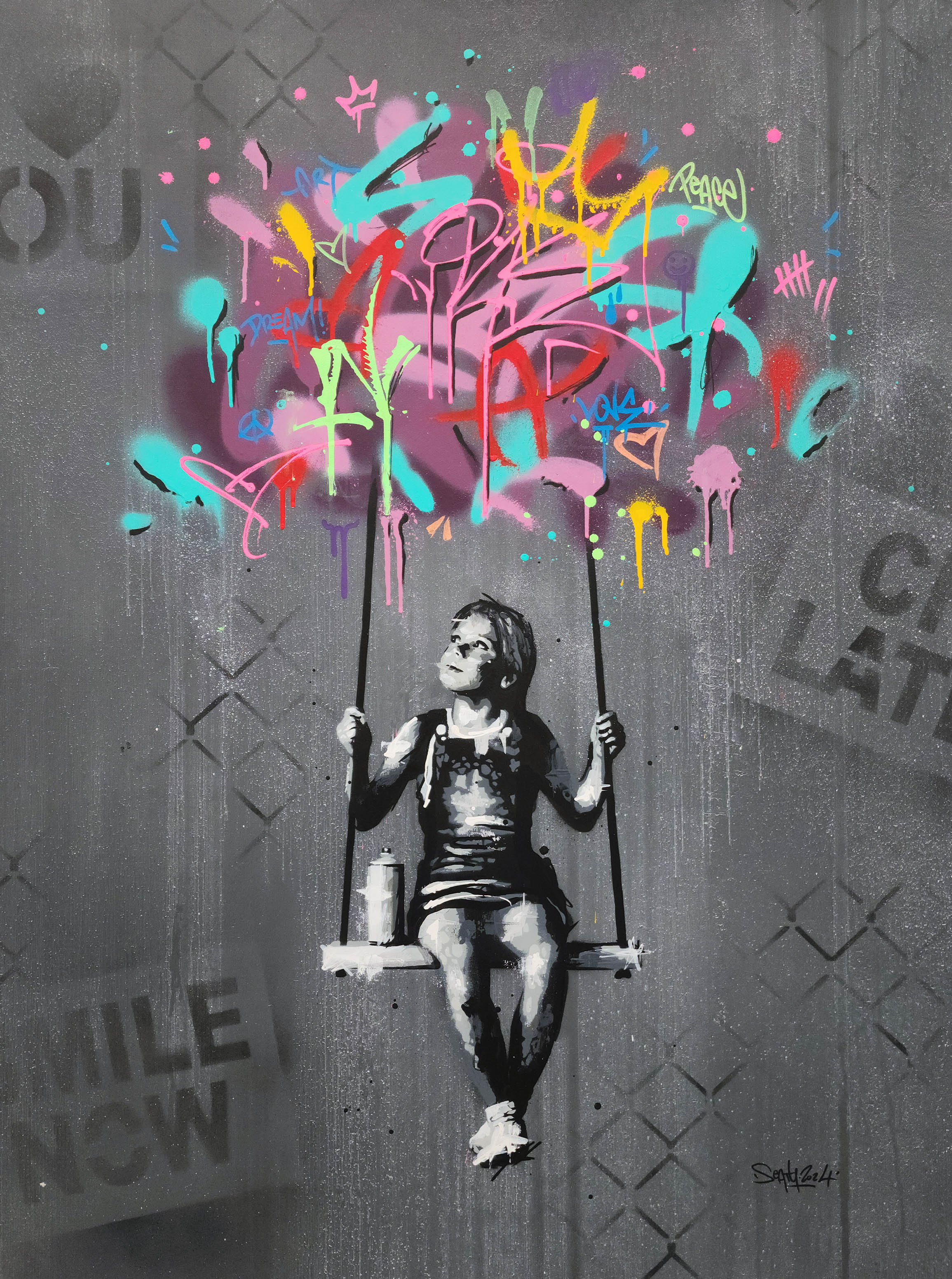 View in Room STILL DREAMING Cette superbe pièce unique en acrylique et technique mixte sur toile fut réalisée par SEATY en 2024.Les dimensions de cette peinture sont 108 x 78 cm – 42.5 x 30.7 inches CONTACT POUR PLUS D’INFORMATIONS DISPONIBILITÉ ET PRIX Your Name* Your email Phone Number Message Envoyer